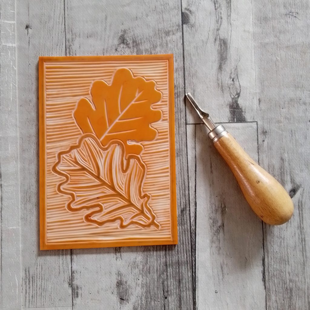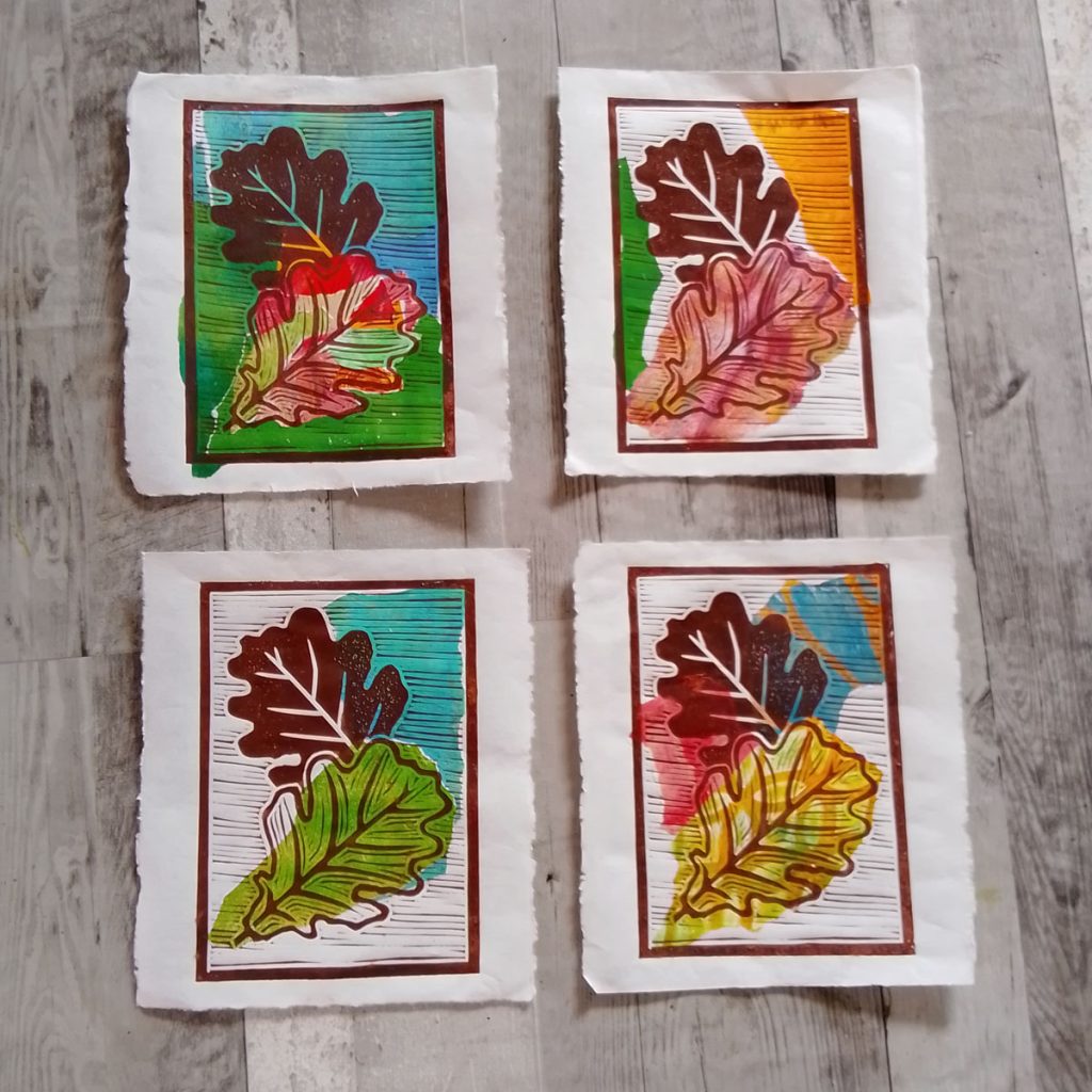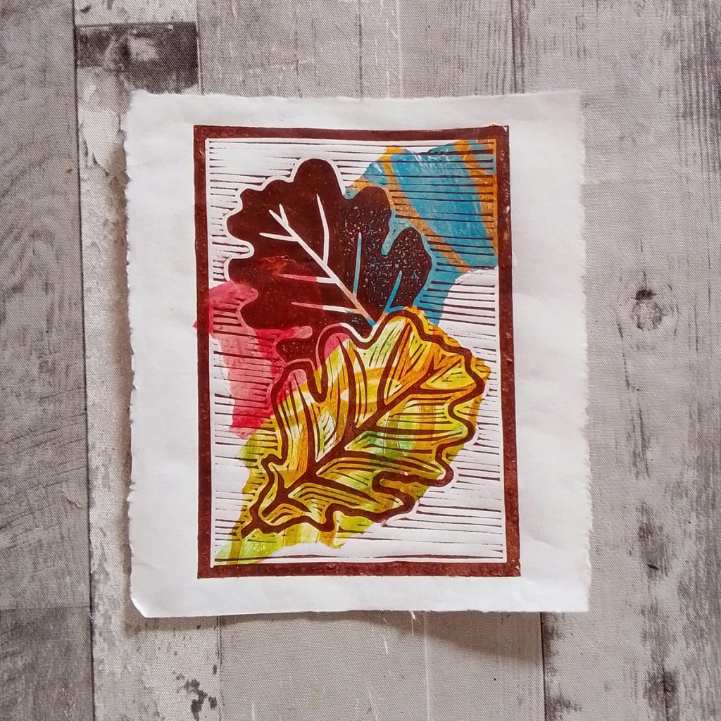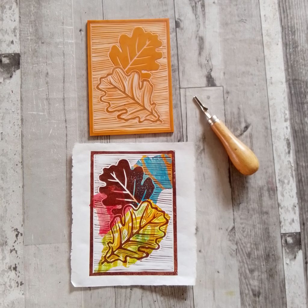 On the workshop we’ll carve a leaf design out of lino, and will print it up using the chine collé collage technique to make a set of unique lino prints.