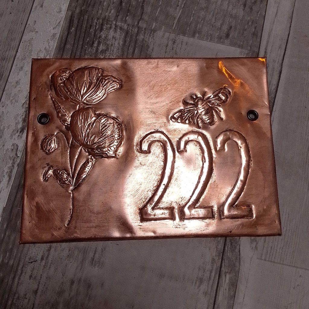 Shown above are two fabulous house numbers made on yesterday’s copper embossed house number workshop. This was a surprise birthday present for one of the participants, who didn’t know what she was coming along to until they both arrived!