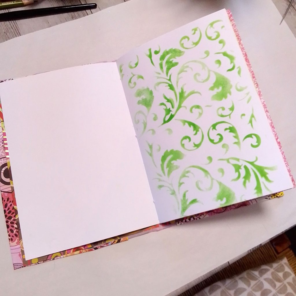 Two beautiful junk journals created on yesterday’s private workshop. The journals were made from scratch and hand bound. They were then decorated with stencils, rubber stamps and collage to create two unique memory books.